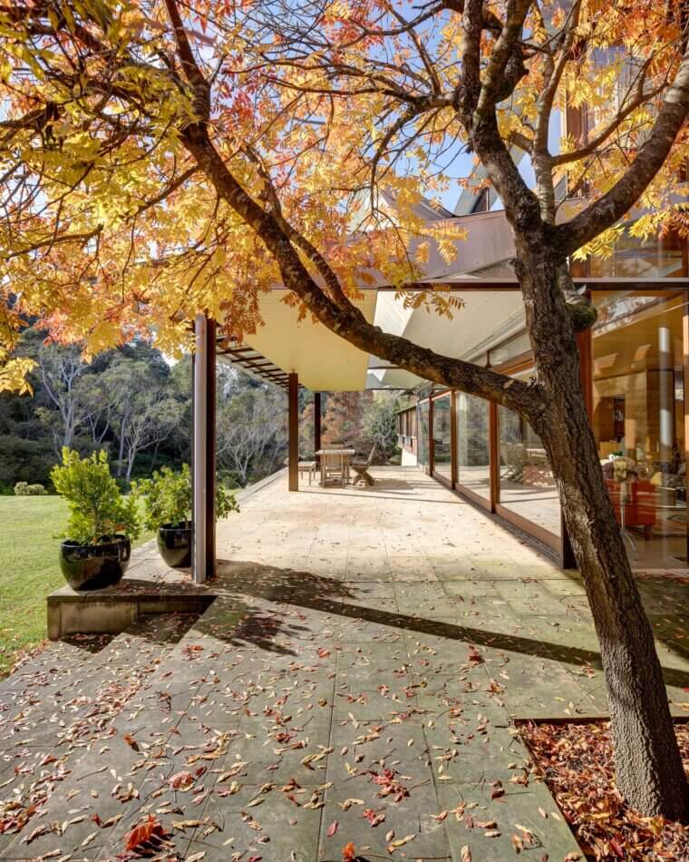 “The award jury rightly credited the landscaping by Craig Burton & Michael Bates. Today, the house sits overlooking a sweeping lawn down to a restored natural bush gully with a clearwater spring and water channel.”