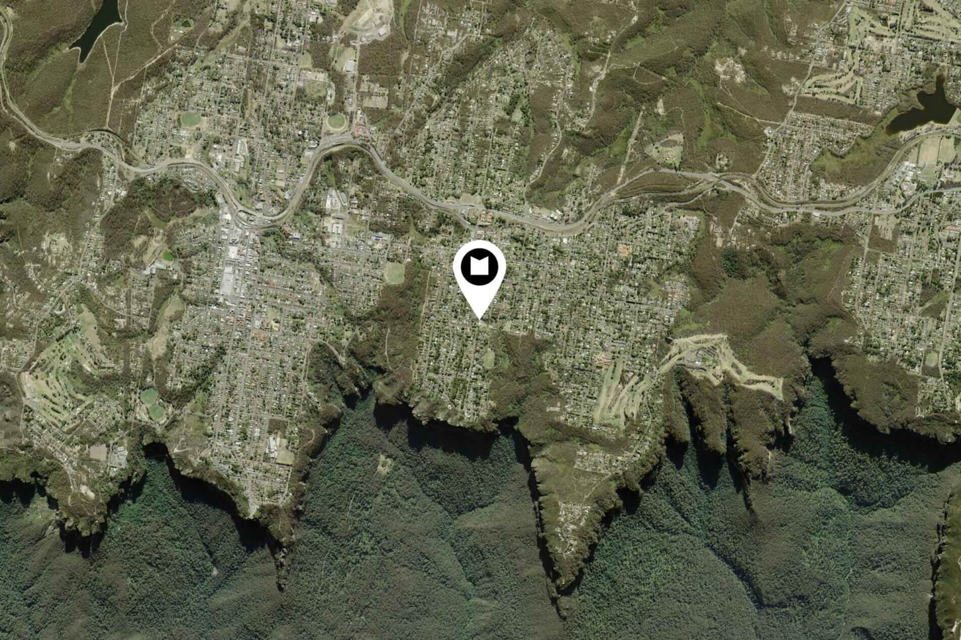 Satellite view and aerial view: Leura lies to the east of Katoomba on the escarpment above the Jamison Valley