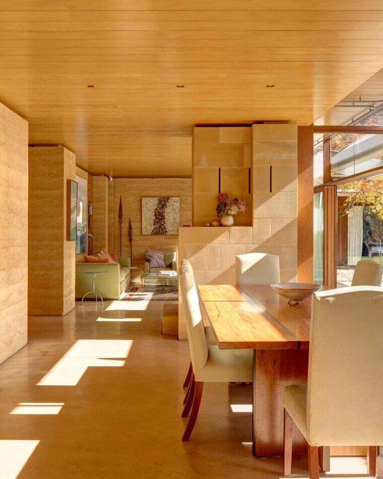 The quality of the rammed earth, used extensively throughout the project, is exceptional. The architect states that it is the best rammed earth of his career. Of particular note are the 90 degree corners, without the need for corner chamfers.