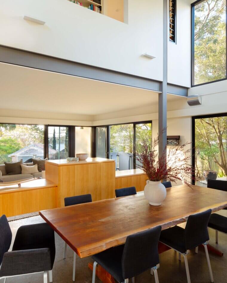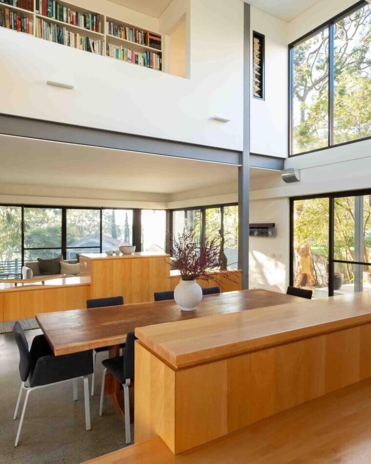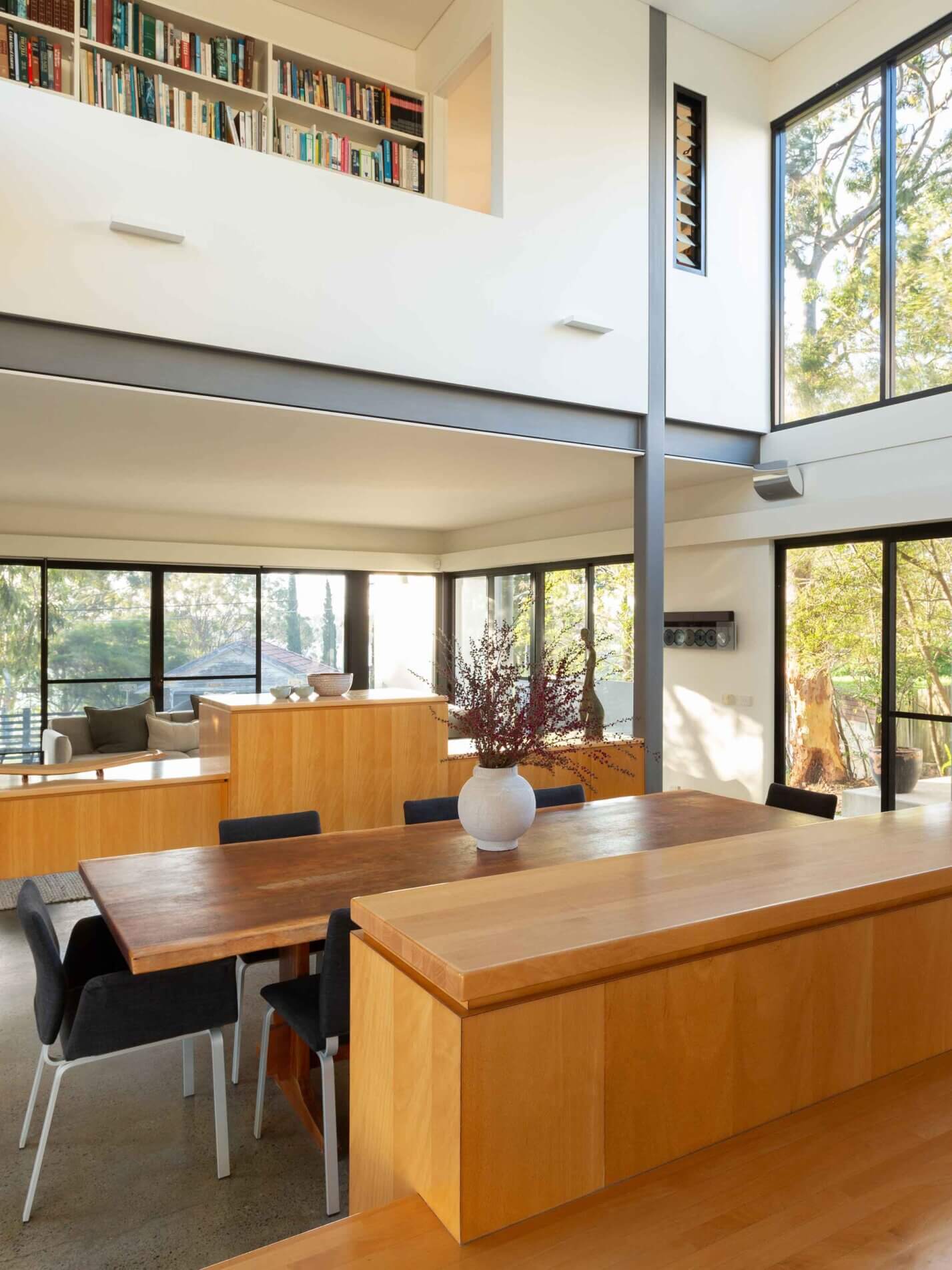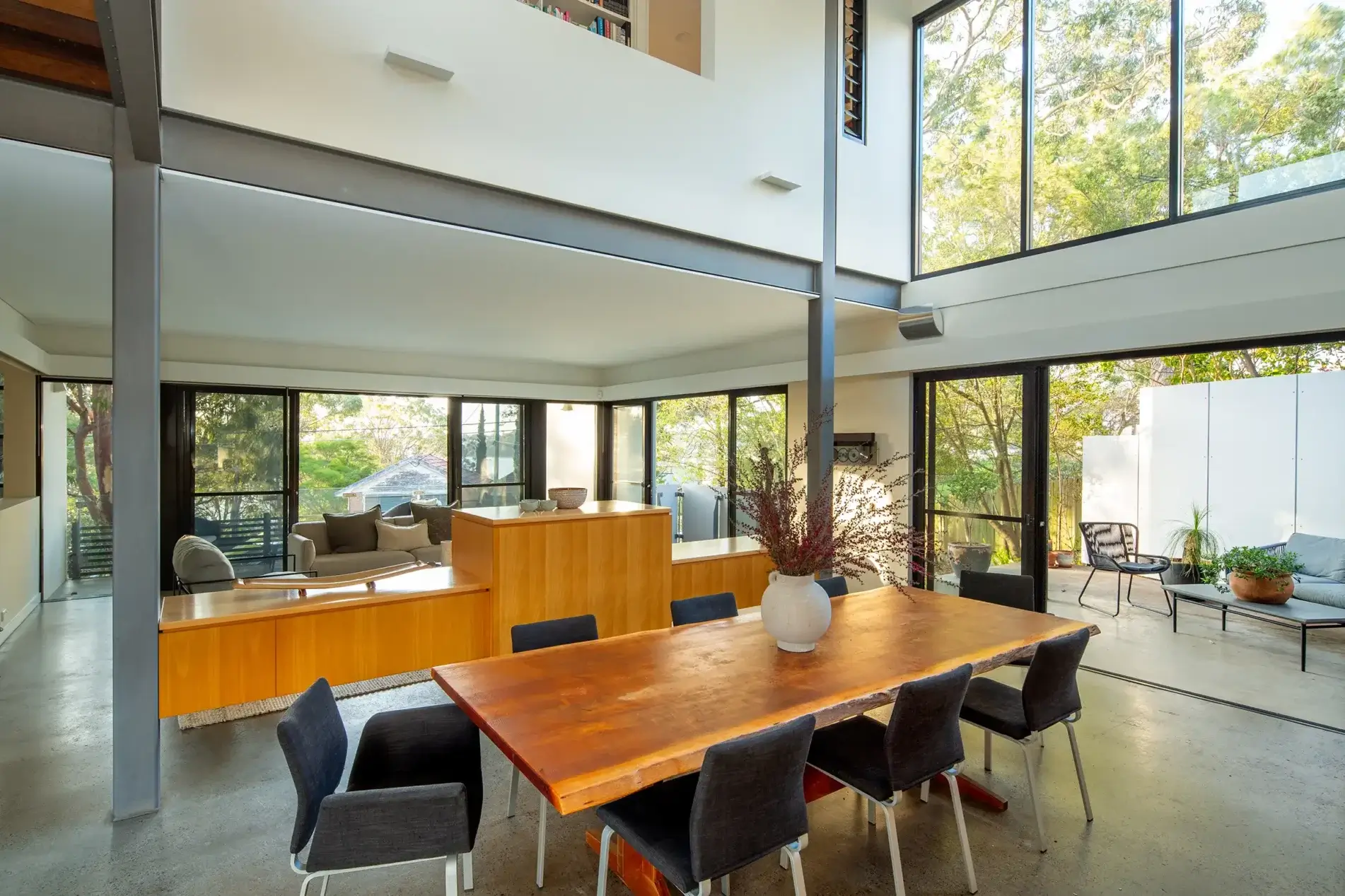 With approximately 394 sqm of total floor space, highlights include a huge master suite wing with a large walk-in dressing room and ensuite, a home office with a 5m desk and 30 sqm of bookshelves, and the fifth and sixth bedrooms that can serve as a guest, Aupair accommodation, or a home gym. Every aspect of this property’s design has been carefully considered, from the exposed structural elements that define its aesthetic to the custom shelving in the bathrooms.