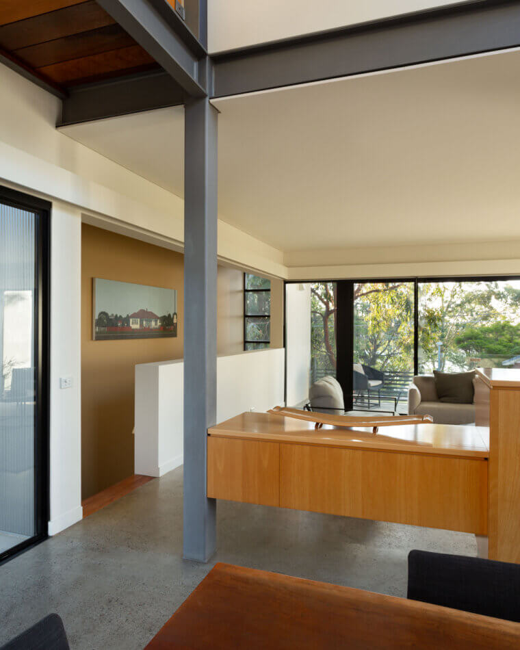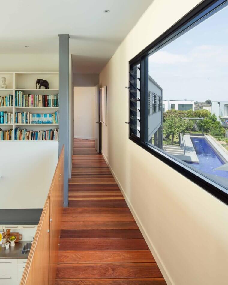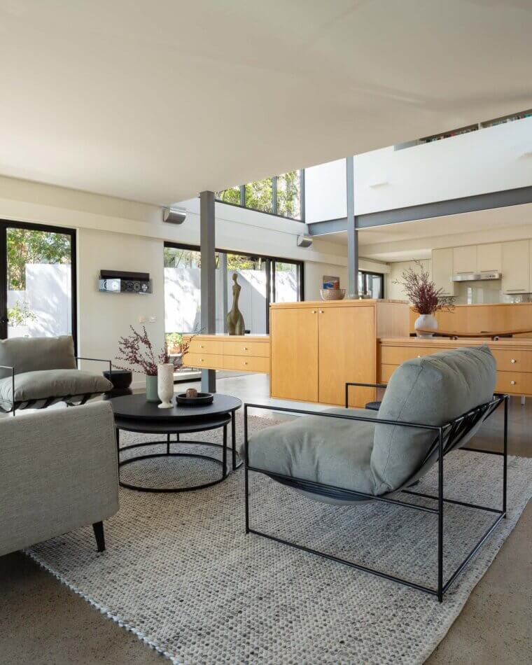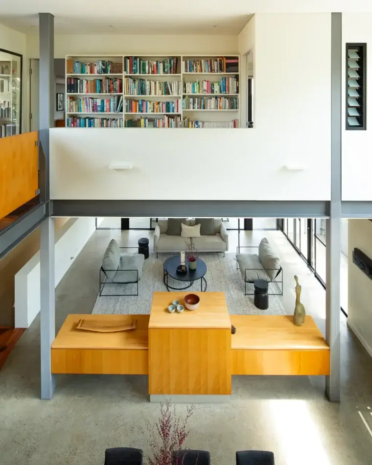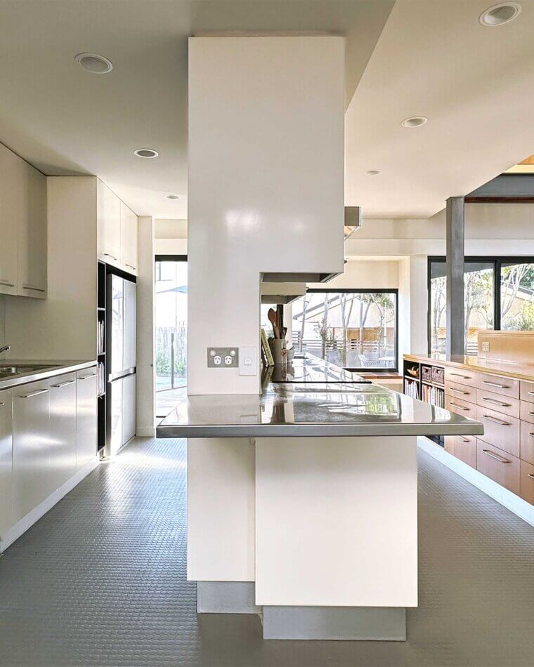With approximately 394 sqm of total floor space, highlights include a huge master suite wing with a large walk-in dressing room and ensuite, a home office with a 5m desk and 30 sqm of bookshelves, and the fifth and sixth bedrooms that can serve as a guest, Aupair accommodation, or a home gym. Every aspect of this property’s design has been carefully considered, from the exposed structural elements that define its aesthetic to the custom shelving in the bathrooms.