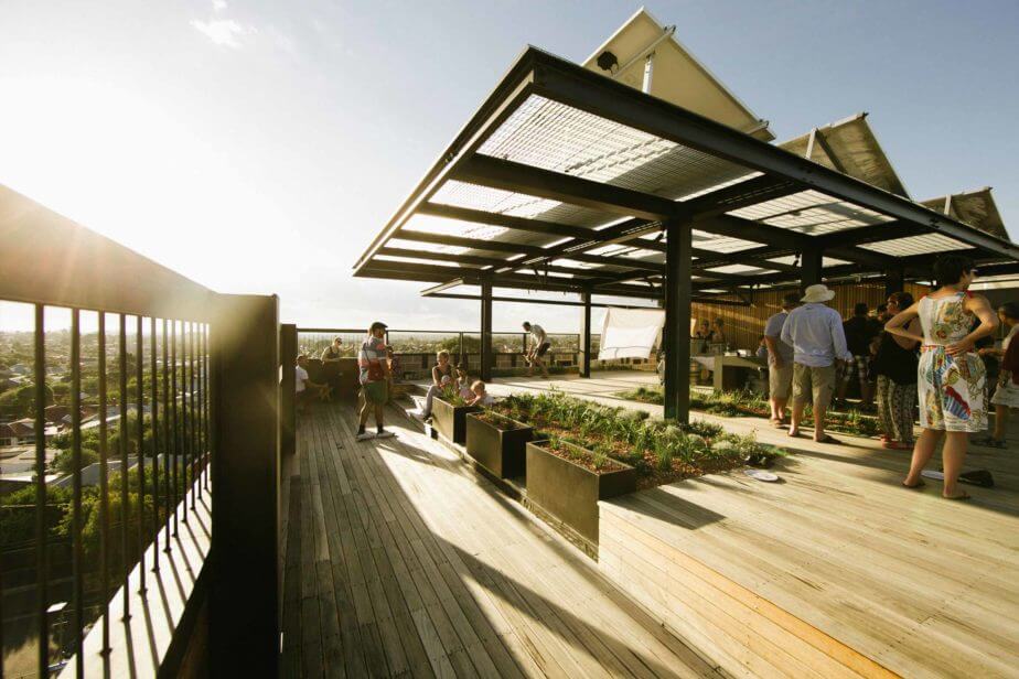 Rooftop garden of The Commons, a Nightingale Housing project in Melbourne, designed by Breathe Architecture.