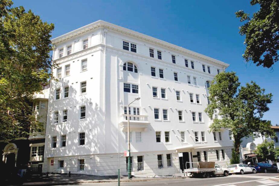 At the north end of Macleay Street, we finish with a classic Art Deco apartment, The Macleay Regis, listed by the National Trust in 1986 and one of the City of Sydney’s heritage properties. One of the largest undertakings by Pitt & Phillips, this pristine example celebrates true art deco, with its monumental entrance, stylized decoration and parallel line motifs. The parquetry flooring and polished columns in the interior are pristine.